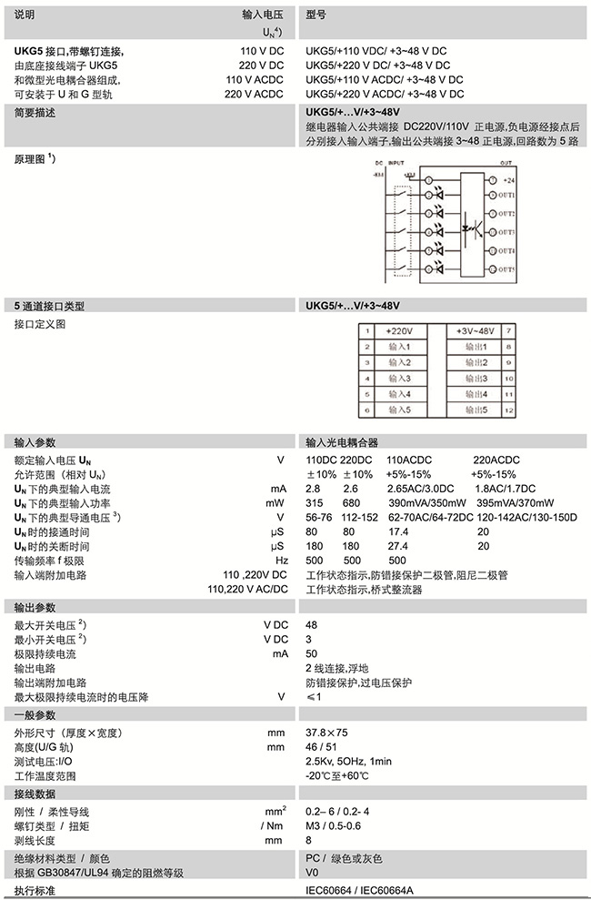 UKG5 系列 帶光電耦合器 UKG5/+...V/+3~48V